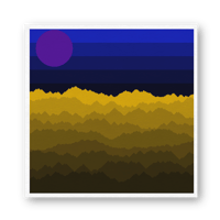 Vibrantly colored abstract mountain ranges below an alien sun in a gradient sky. Code art design generatively created in Processing, then printed in a limited run of 4 by Sore Thumb printing in Portland, OR. Prints are 12"x12", signed, and hand-numbered.
