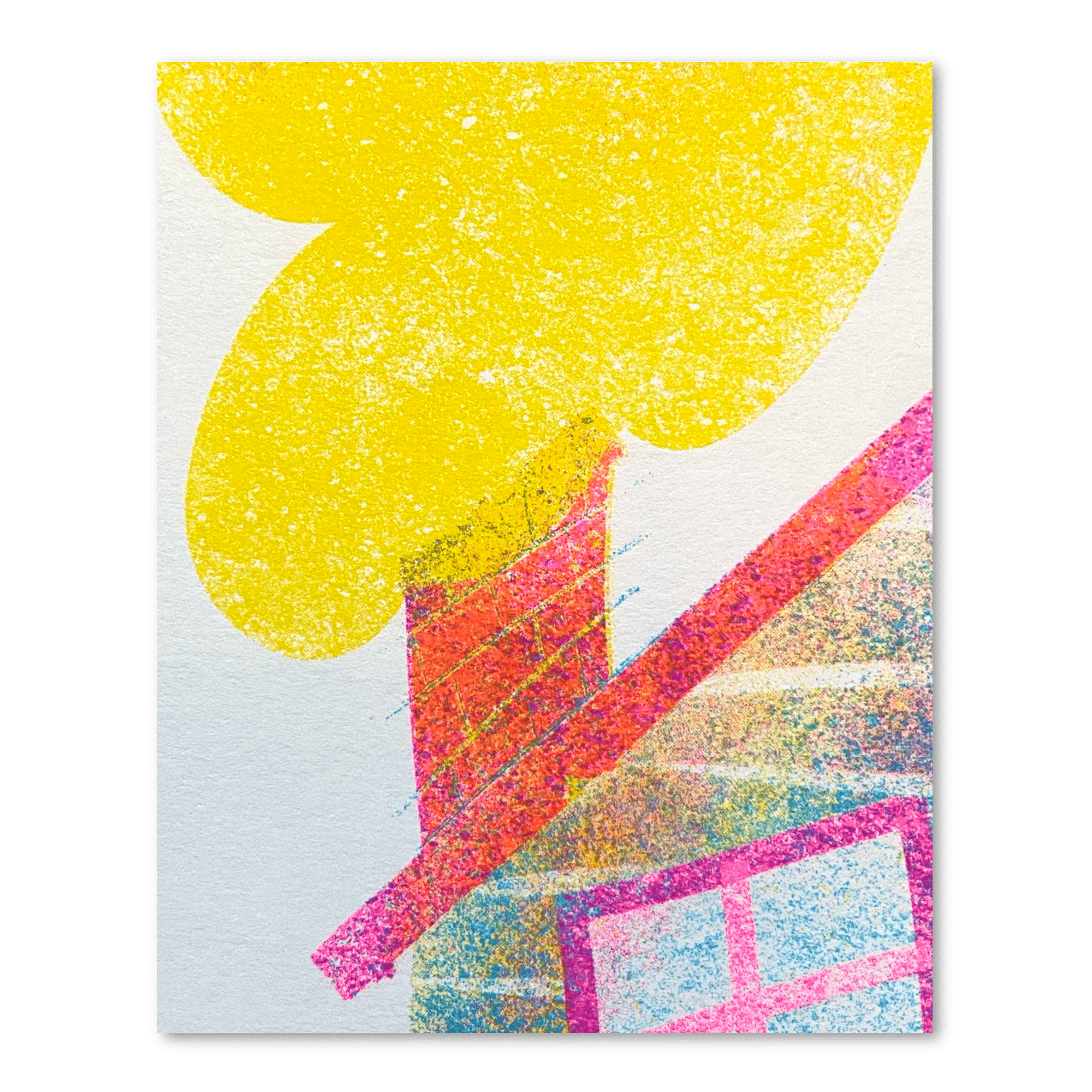 8”x10" 3-color riso print on high quality off-white paper, risograph printed here in Portland, OR at Secret Room Press. Fluorescent Pink, Yellow, and Aqua inks used.